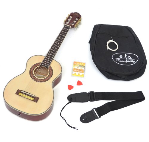 Ts-ideen 4532 Guitare acoustique classique 1/4 pour Enfant avec Housse rembourrée/Sangle/Jeu de cordes/Diapason à bouche/2 médiators Nature: Amazon.fr: