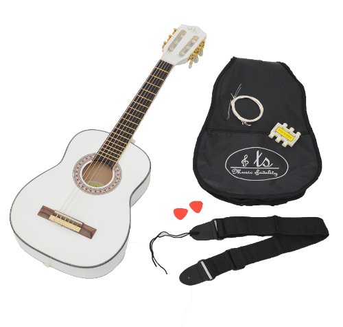 Ts-ideen 5251 Guitare acoustique 1/4 pour Enfant avec poche Guitare classique Guitare classique blanc naturel. la taille 1/4 pour les enfants de 4