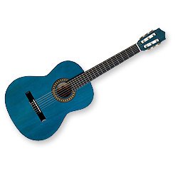 Guitare classique- Table, Dos et Eclisses: tilleul - Manche: nato - Touche et Chevalet: érable massif peint en noir - Mécaniques: standards, nickelées - Finition: vernis brillant- Diapason: 646 mm - ModÚle 4/4 - Couleur: bleu transparent....