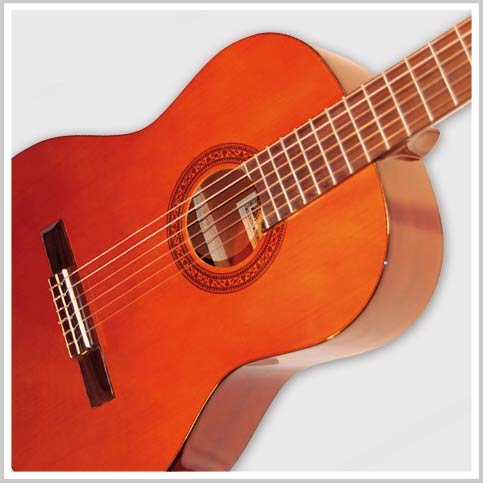 Cet instrument vous procurera certainement de la joie. La table d'harmonie en épicéa verni est un véritable régal pour l'?il. Afin que la touche en palissandre puisse être jouée de façon optimale, la position des cordes a été parfaitement arrangée. Des incrustations en marqueterie sur le corps et la tête mettent en valeur et embellissent une fabrication manuelle de qualité. 6 mécanismes de précision permettent d'accorder facilement l'instrument et maintiennent parfaitement le réglage de la tension des cordes au niveau des roues dentées que l'on fait tourner au moyen des chevilles. La guitare classique proposée ici est de très bonne qualité eu égard à son prix. Elle est de fabrication supérieure à celle du modèle pour débutants. Les guitares classiques que vous pouvez acquérir auprès de nous conviennent particulièrement aux débutants et aux amateurs.